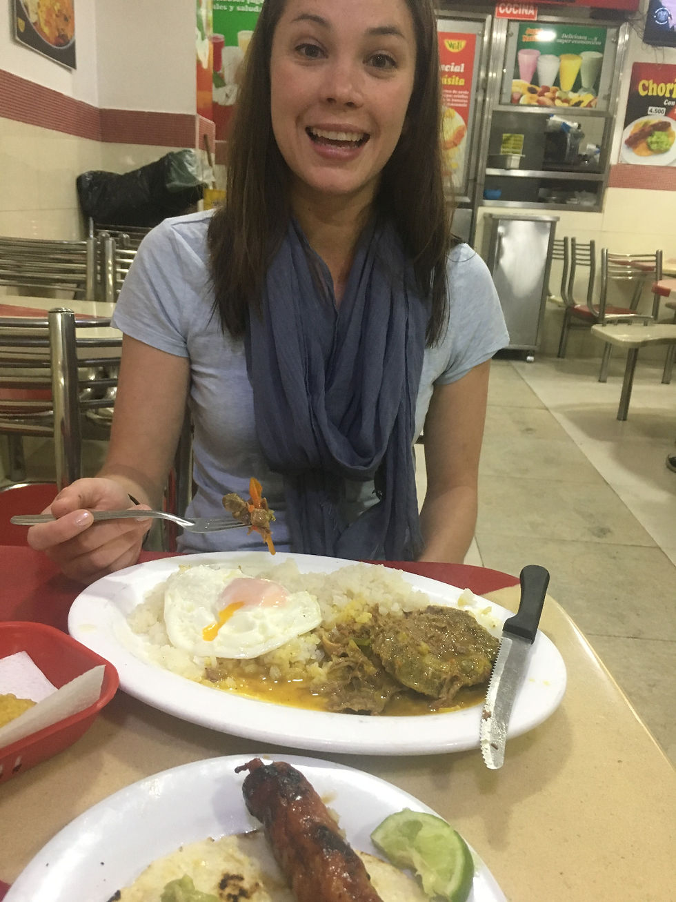 We stayed the first 4 nights at Aurora Hostel in Bogotá. Overall a good choice, it was neat and clean and in a fairly good location in the Chapinero neighborhood (though we would eventually find out that the kitchen was off limits to guests, which is a big bummer for budget travelers). We rested and showered before heading out to grab a quick bite to eat. Just a few blocks away from our hostel was a row of “diner”-like restaurants with servers eager for our business. After some language barriers, we successfully ordered a chorizo y arepa (a Colombian staple), an empanada con pollo, and carne y arroz con huevo – delicious and cheap! After a long travel day, we decided to head back to the hostel for some sleep. Being a Saturday night, some of the guests were having fun in the lounge area with drinks and Jenga. We joined for an intense and active round – prior to each pull, you had to spin around 3 times, do a burpee, and a jumping jack – but ended when I knocked over the tower. Full of shame, we retired upstairs for an early bedtime and lots of sleep.