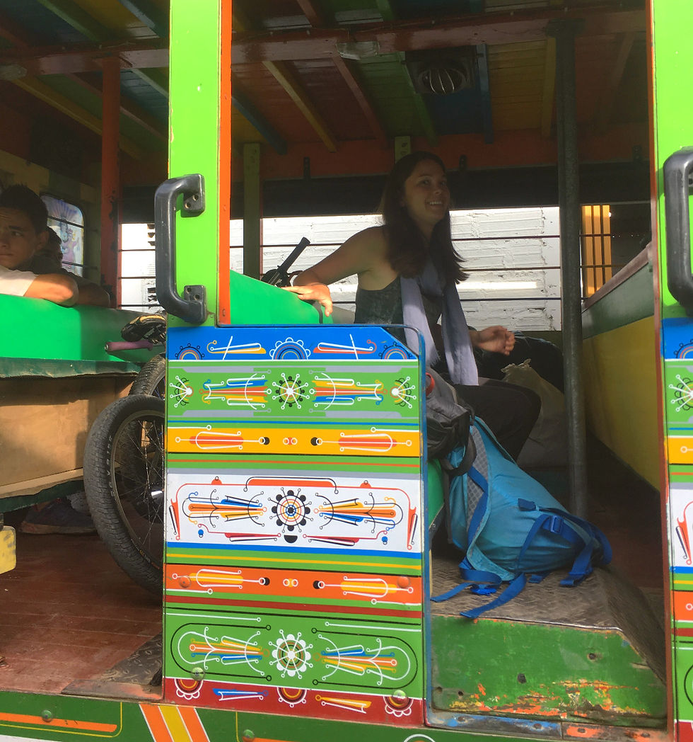 We woke up to that stupid baby crying again. At breakfast I glared at it a bunch but it’s a baby so it probably didn’t realized how dumb it was being. The hostel workers brought out our breakfast at 7:50 and we basically shotgunned it and ran out the door to find our 8 o’clock bus! We walked over near the bus stop and there seemed to be a circus and or party bus blocking the street, so we headed over to the ticket stand and asked where to bus to Riosucio was. He pointed to the circus bus, oh good! I don’t even know how to describe this bus – it was painted with all sorts of colors and designs, it was blasting some sort of Hispanic circus music, it had no doors, just handholds up to the seating area – a bunch of benches. It seemed too wide for any roads in town as well. Apparently this was our bus, so we climbed up and stashed our packs under the seats and the bus lurched away.